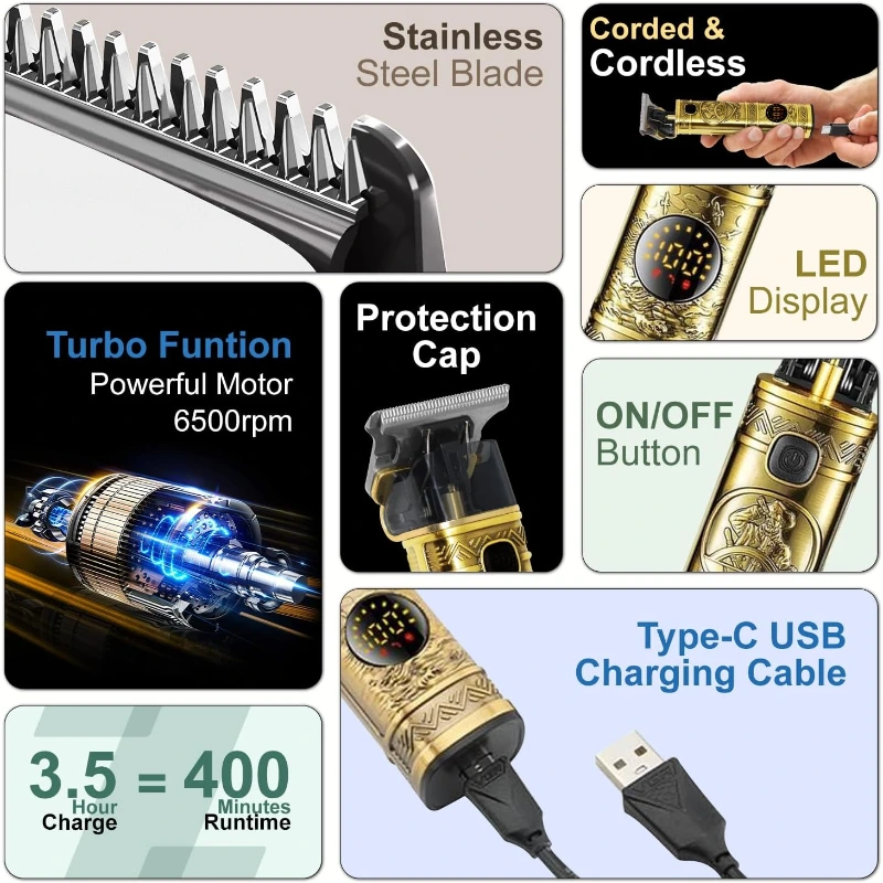 تعتبر ماكينة الحلاقة VGR V-097 الاختيار الأمثل للرجال، مع تصميم معدني أنيق وشفرات حادة. إطالة التشغيل تصل إلى 400 دقيقة مع شحن سريع، توفر لك حلاقة دقيقة في كل مرة.