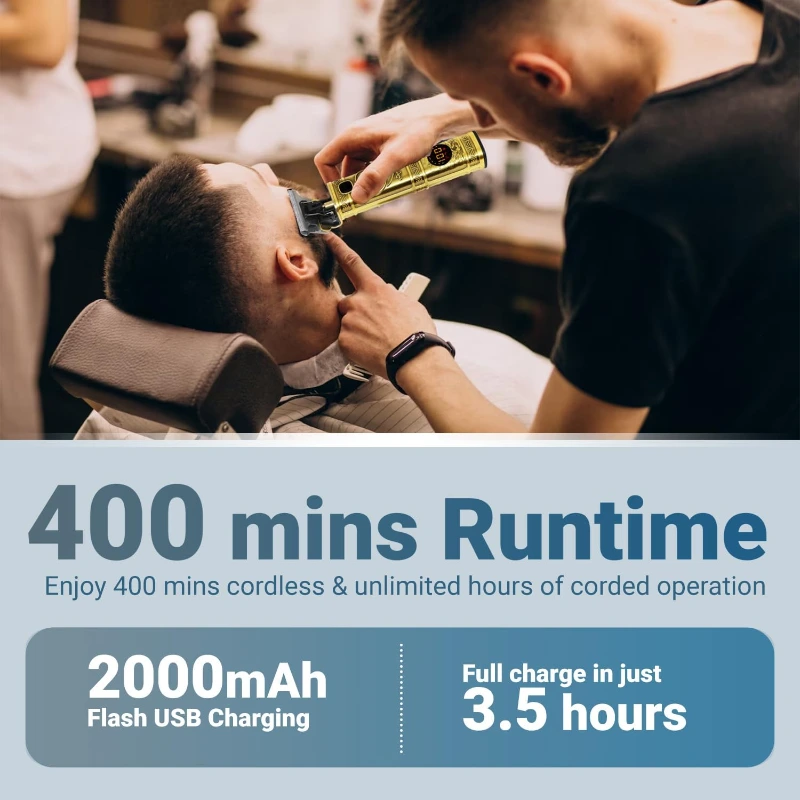 ماكينة حلاقة الشعر VGR V-097 المحدودة هي الخيار المثالي للرجال الذين يسعون للحصول على مظهر أنيق وعصري. تتميز هذه الماكينة بجسد معدني أنيق وشفرة حادة من الفولاذ المقاوم للصدأ، مما يضمن لك حلاقة دقيقة وسلسة. مزودة ببطارية ليثيوم بقوة 2000 مللي أمبير، توفر هذه الماكينة حتى 400 دقيقة من التشغيل المتواصل بعد شحنها لمدة 3.5 ساعة فقط. يمكن استخدامها بسلك أو بدون سلك، وتأتي مع شاشة LED توضح مستوى شحن البطارية. تشمل المحتويات مشط قص قابل للتعديل (1، 2، 3 مم) وغطاء لحماية الشفرة وكابل شحن USB، بالإضافة إلى زيت فرشاة تنظيف للحفاظ على أدائها.