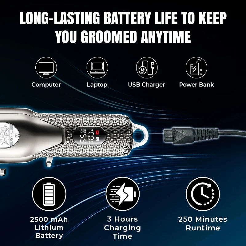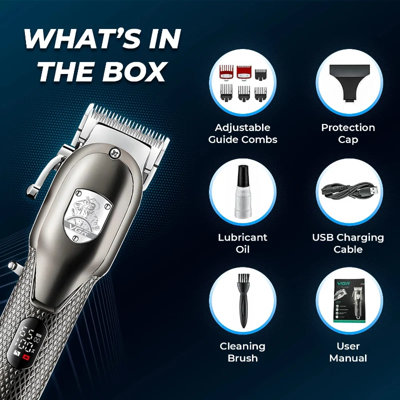 ماكينة قص الشعر VGR V-276 تقدم لك تجربة حلاقة احترافية مع شفرات حادة ومحرك قوي، مما يمكنّك من قص الشعر بدقة وسهولة.
